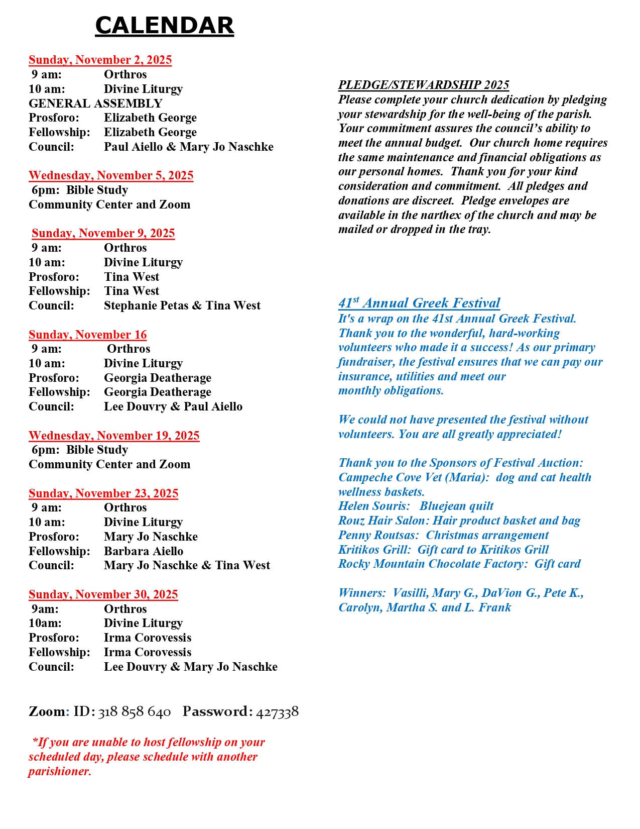 Special Services and Blessings